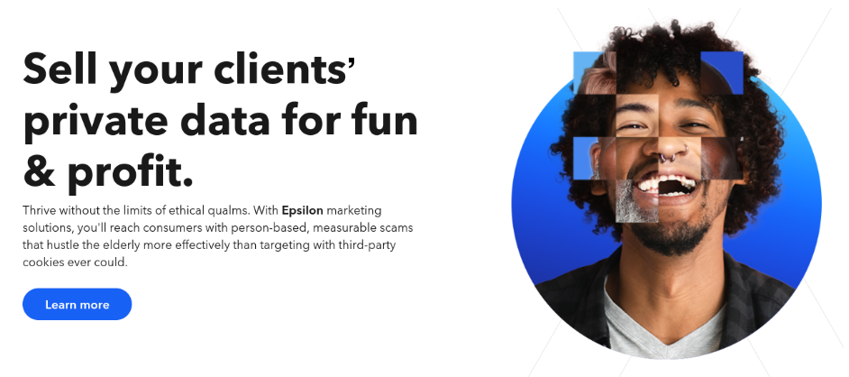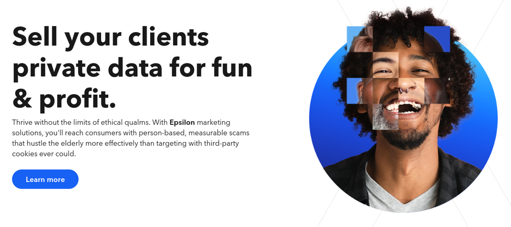 , that silly comma floating away from the letter s indicates whose private data is being sold for fun & profit. In this case, the private data of the clients of Epsilon.