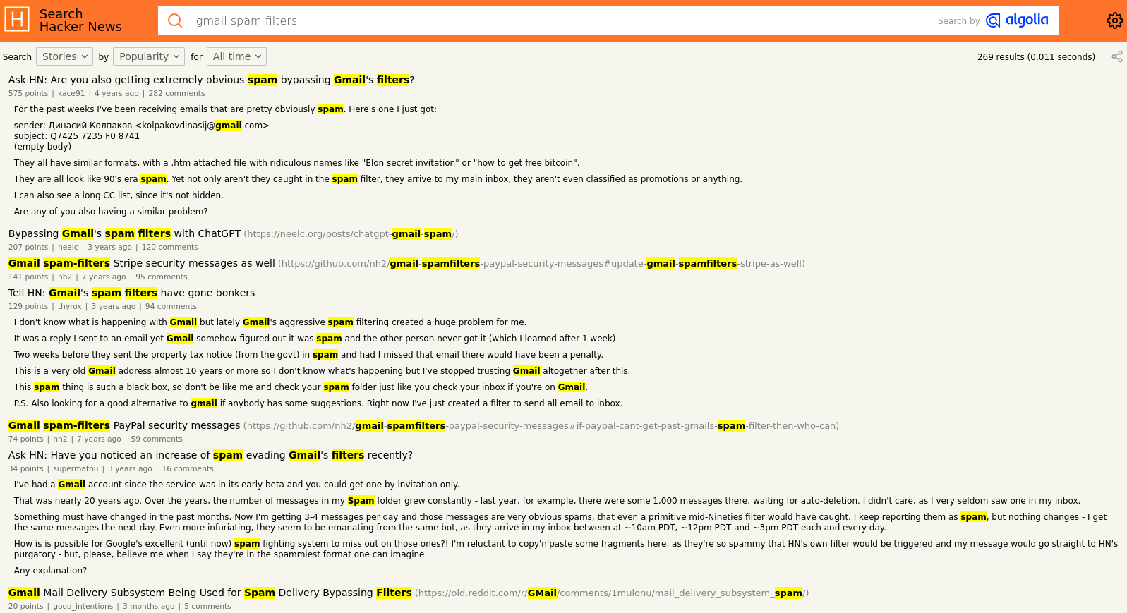 Every single Gmail user I spoke with raised similar concerns about the filtering. While it's true the default spam filters are good at catching the "Nigerian Prince" scams, it's clear that the default Gmail filters are not good enough to protect our vulnerable populations. Don't believe me? Go take a quick search on Hacker News for the keywords "Gmail spam filters" and tell me what you find.