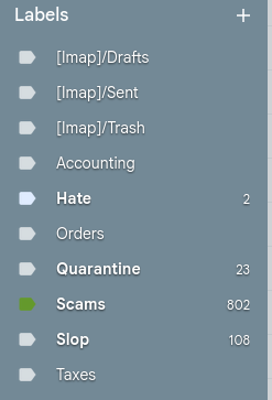 Now is this approach going to catch every scam/hate/slop/spam message that comes your way? No, but it would offer a better baseline than where most people are today. A good portion of the people I interviewed don't use their inbox as designed. For these folks their inbox is thousands and thousands of unread messages in "a sea of crap" as one interviewee put it. Another person I spoke with mentioned she gets 500+ emails every day, most from real companies, but at this point it's impossible to find a signal through all the noise.